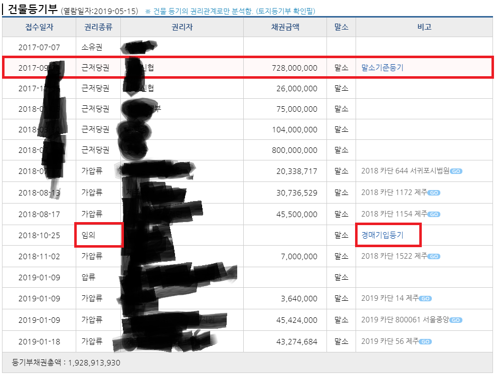 위 링크가 언제까지 유지될 지 모르겠지만, 건물 등기부는 다음과 같다.