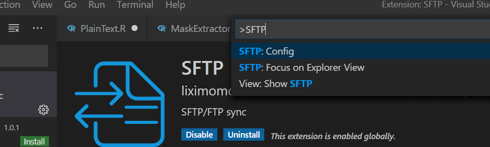 6. 저장하는 순간, 좌측 extension 목록에 sftp가 동기화됩니다.