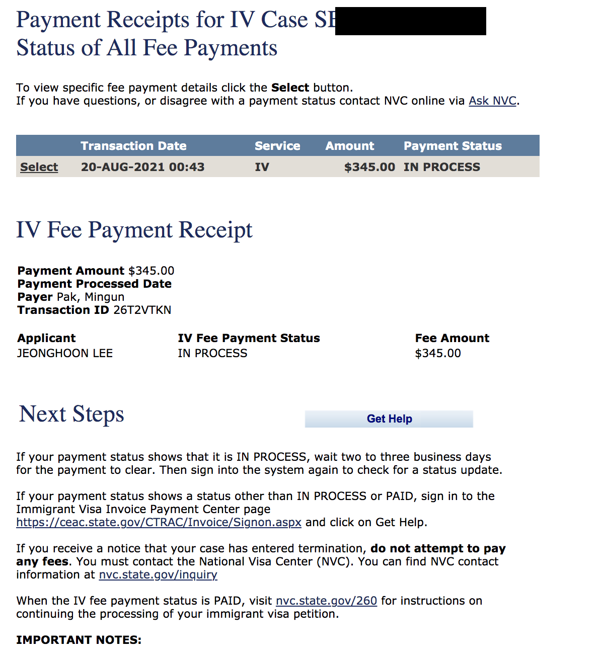 2021년 8월 3일, 국무부로 이관 된 이후에 DS-260을 진행한다.