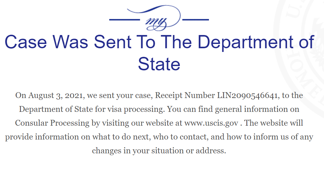 2021년 8월 3일, 국무부로 이관 된 이후에 DS-260을 진행한다.