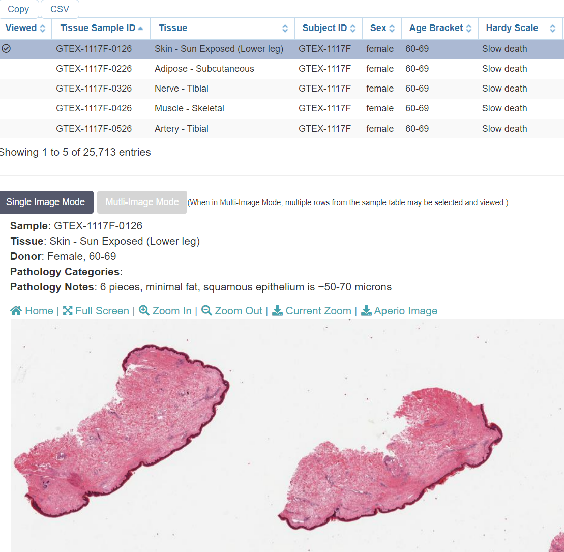 2. GTEx portal에서 histology viewer 에서 샘플 확인하기