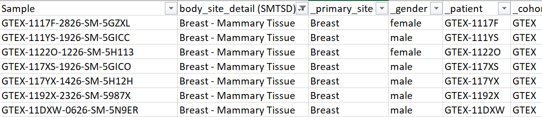 GTEx 데이터에서 원하는 tissue의 sample ID를 가져올 수 있다.
