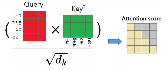 Embedding된 같은 text에 서로 다른 weight가 곱해진 scaled된 두 행렬 (Query와 Key)은
