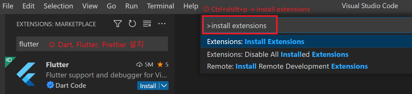 - Dart, Flutter, Prettier 설치