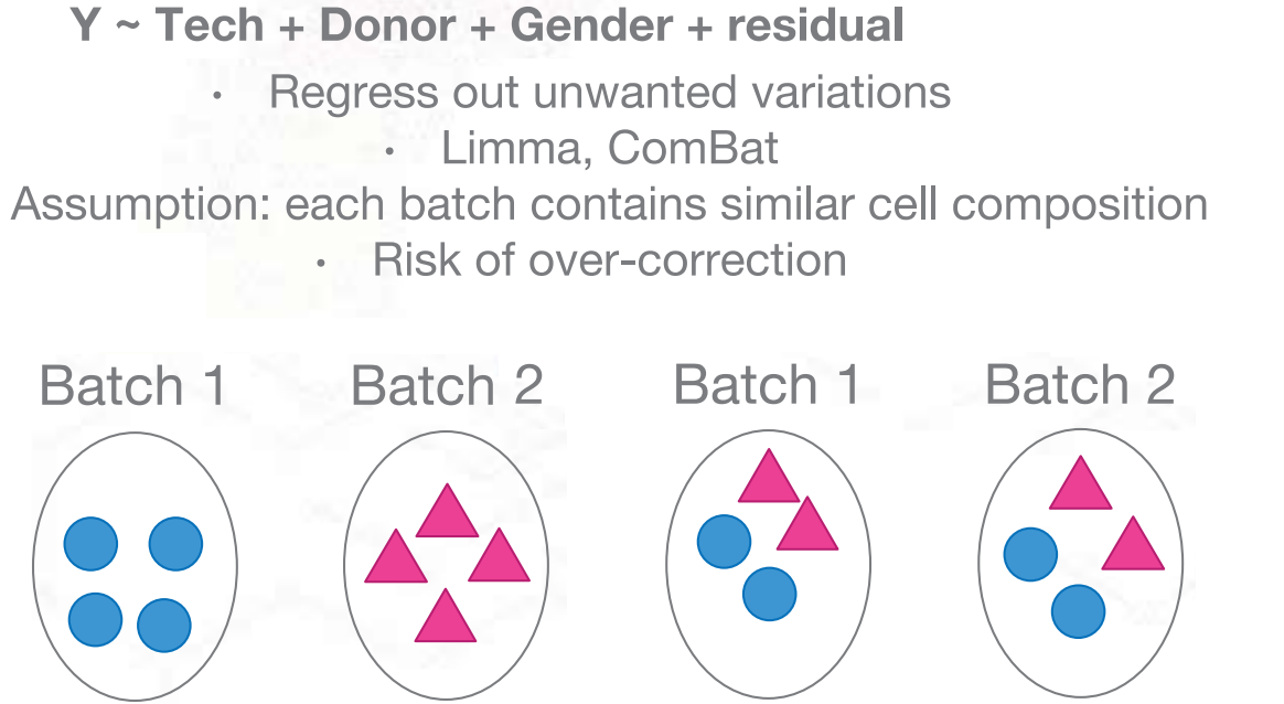 (Gene expression ~ Batch + Cell Type) += 추가적인 다른단계에서 Batch effect correction