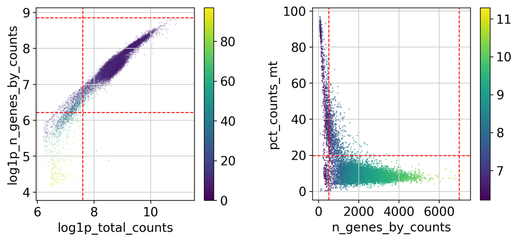 High Mitochondrial contents: 죽어가는 세포 or stressed cells (버리는 경우 많음)