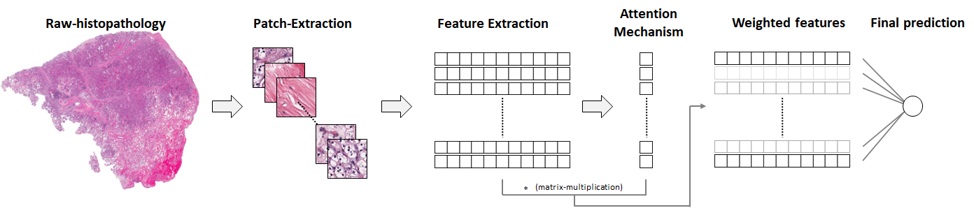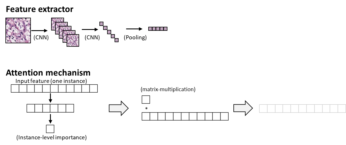 뭔가 어려워보이지만, 단순 Matrix 데이터를 활용하여 Label에 맞추는 것에 불과해보이기도 한다. 여기서의 쟁점은, Attention mechanism을 활용하여 어떤 Patch가 (row가) 중요했냐를 추론하여, Histopathology 상에서 중요한 부위를 검증하고, 이를 pathology knowledge와 연결하는 것이다.