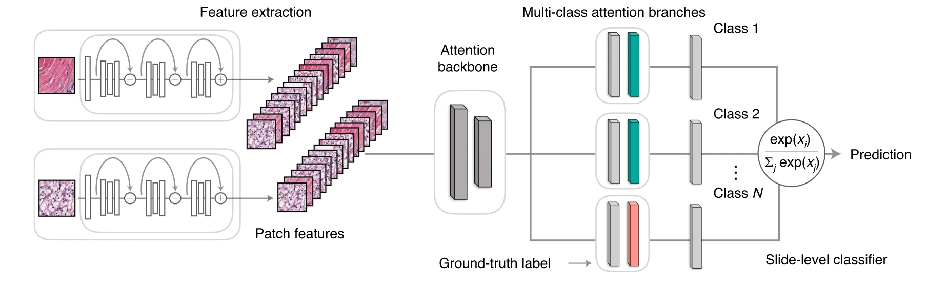 Lu, Ming Y., et al. "Data-efficient and weakly supervised computational pathology on whole-slide images." Nature biomedical engineering 5.6 (2021): 555-570.