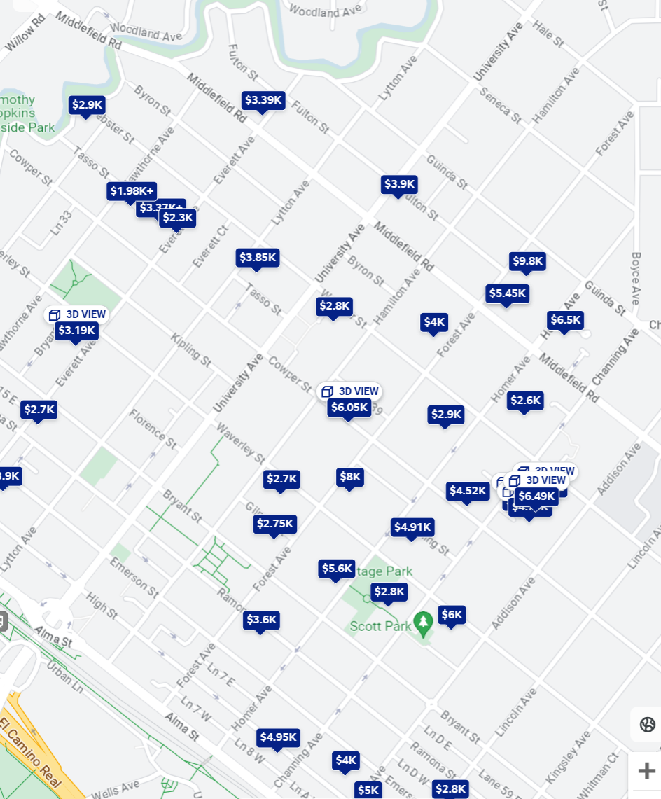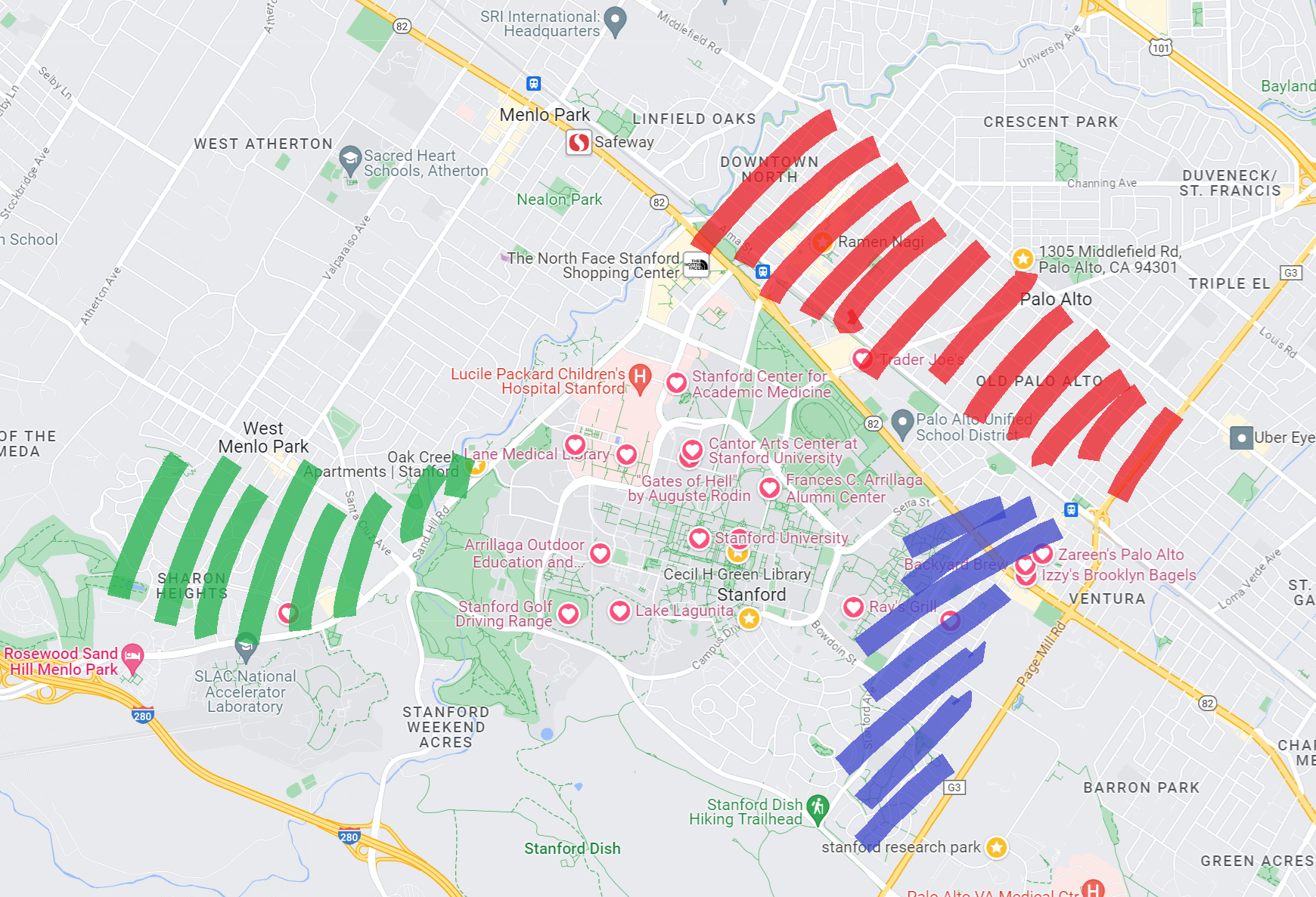 바로 차를 구매하는 것이 쉽지 않으니, 스탠포드까지 자전거로 출퇴근이 가능한 지역을 찾아보았다.