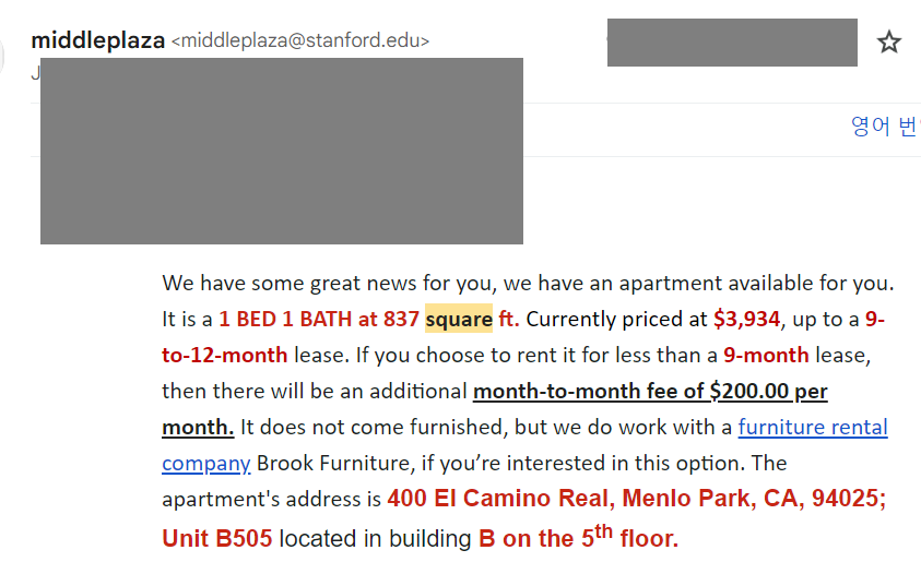 아쉽게 스탠포드 하우징이 안되어, 직접 랜트로 거주할 아파트, 콘도를 알아보려고 찾아봤다.