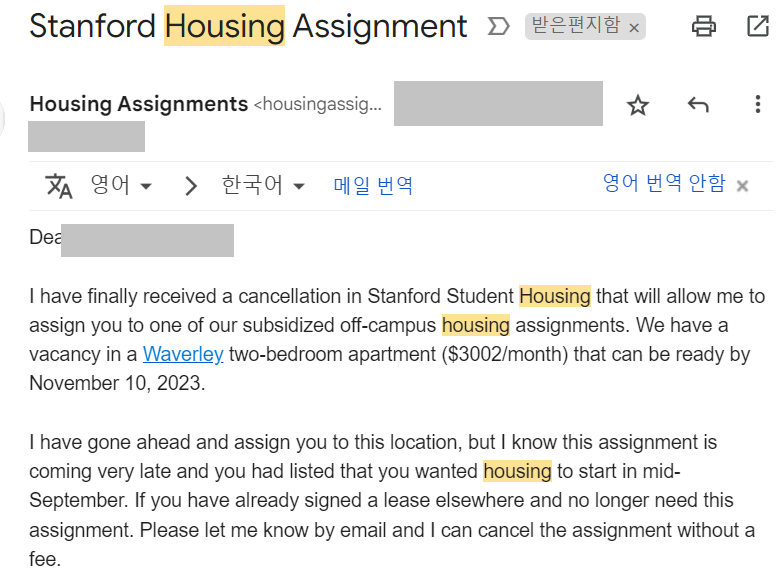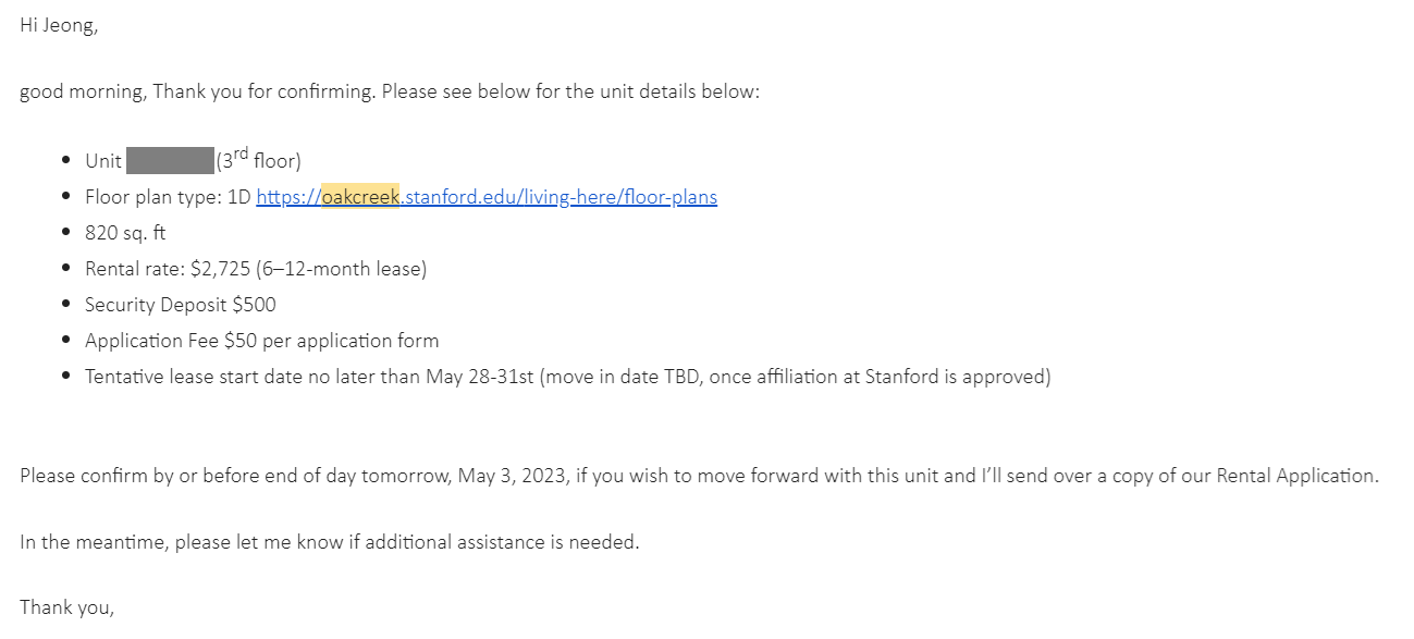 Oak creek에 당첨되었으나, 예상보다 빨리 입주해야 해서 한 번 미뤘더니, 다신 연락이 오지 않았다 ㅠㅠ