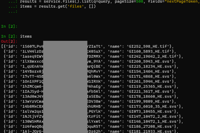pageSize=500: 최대 500개의 파일을 가져옵니다. 파일의 수가 더 많다면 더 크게 설정