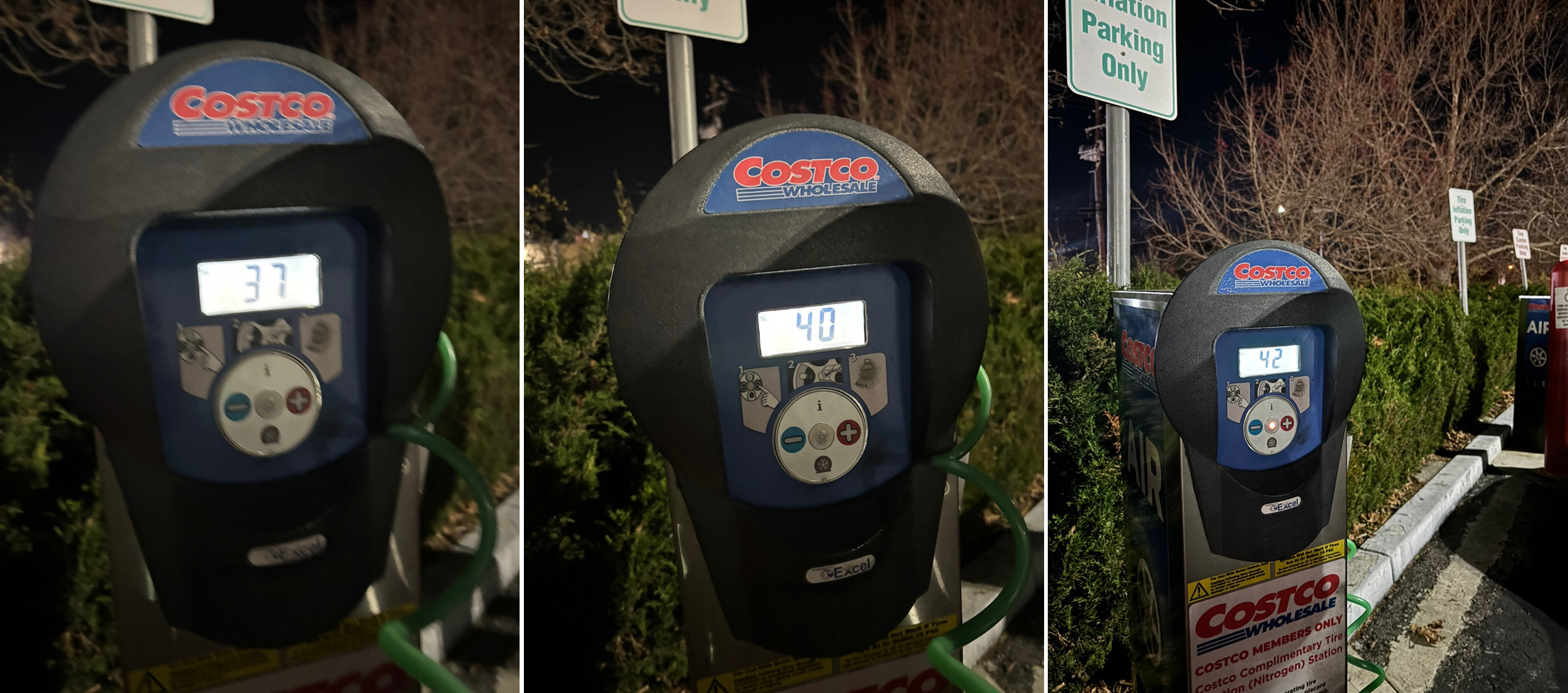 코스트코의 셀프 공기압 충전소에 차를 대시고