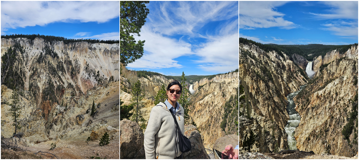 옐로스톤의 그랜드 캐년이라고 불리는 곳입니다. 두개의 폭포로부터 떨어지는 물이 깎아낸 협곡이 엄청나고 웅장한 자태를 자랑하는 곳입니다. 사진은 그 감동을 하나도 전달하지 못하네요.. 전망대까지의 트래킹 코스는 짧습니다. 10분 내외? 정도 입니다. 눈으로 감상 시 엄청난 감동.. 을 느끼실 수 있습니다.