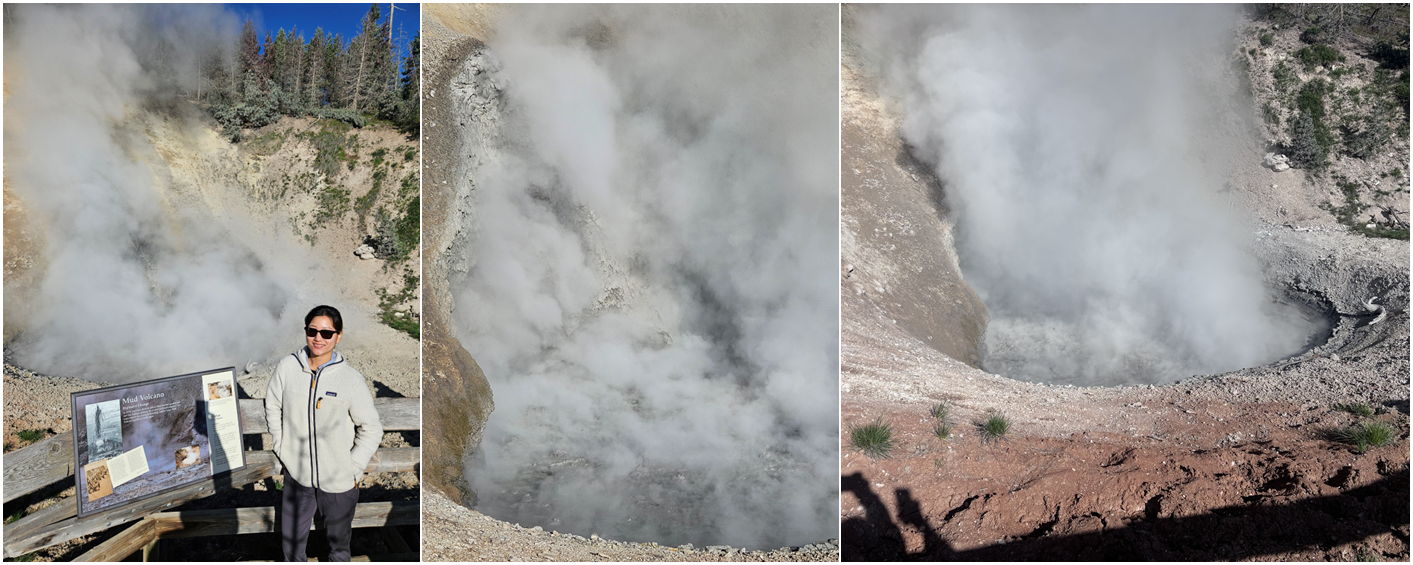 화산 열로 인하여 진흙이 끓어오르는 화산 지대입니다. 솔직히 아름답진 않지만, 진흙이 끓어오르는게 정말 신기하긴 해요. 옐로스톤 하면 떠오르는 대표적인 스팟인듯 합니다. 매우 큰 구멍들에서는 드래곤이 불을 뿜듯 엄청난 수증기와 끓는 물들이 파도치며 올라오고, 작은 진흙 구멍에서 부글부글 보글보글 들끓고 있는 진흙을 보면, 이게 지금 내가 지구에 있는게 맞나 싶은 생각이 듭니다.