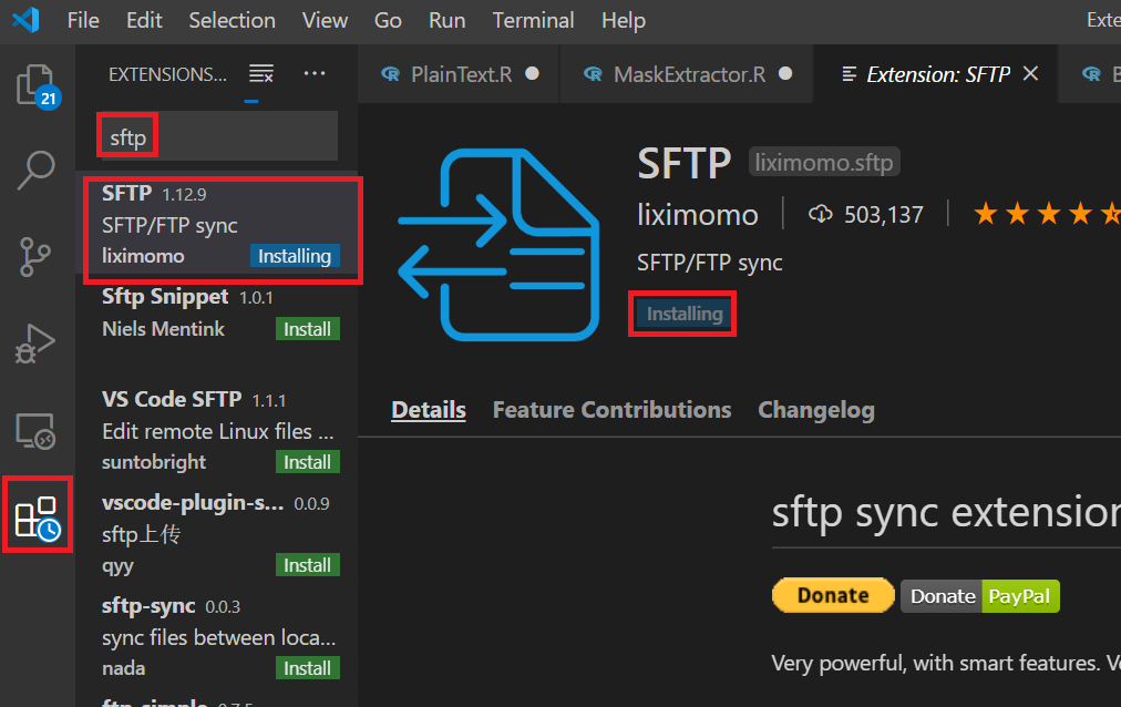 2. extension에서 sftp를 검색하여 install 버튼을 누른다.