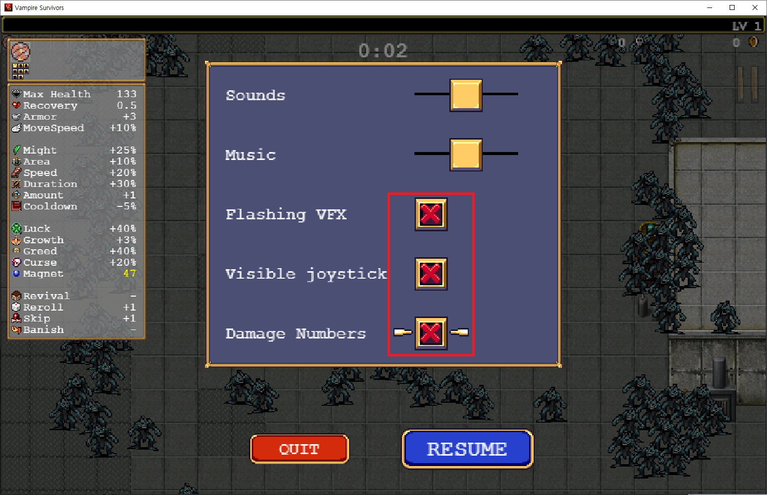 뱀파이어 서바이벌, 렉 안걸리게 하는법