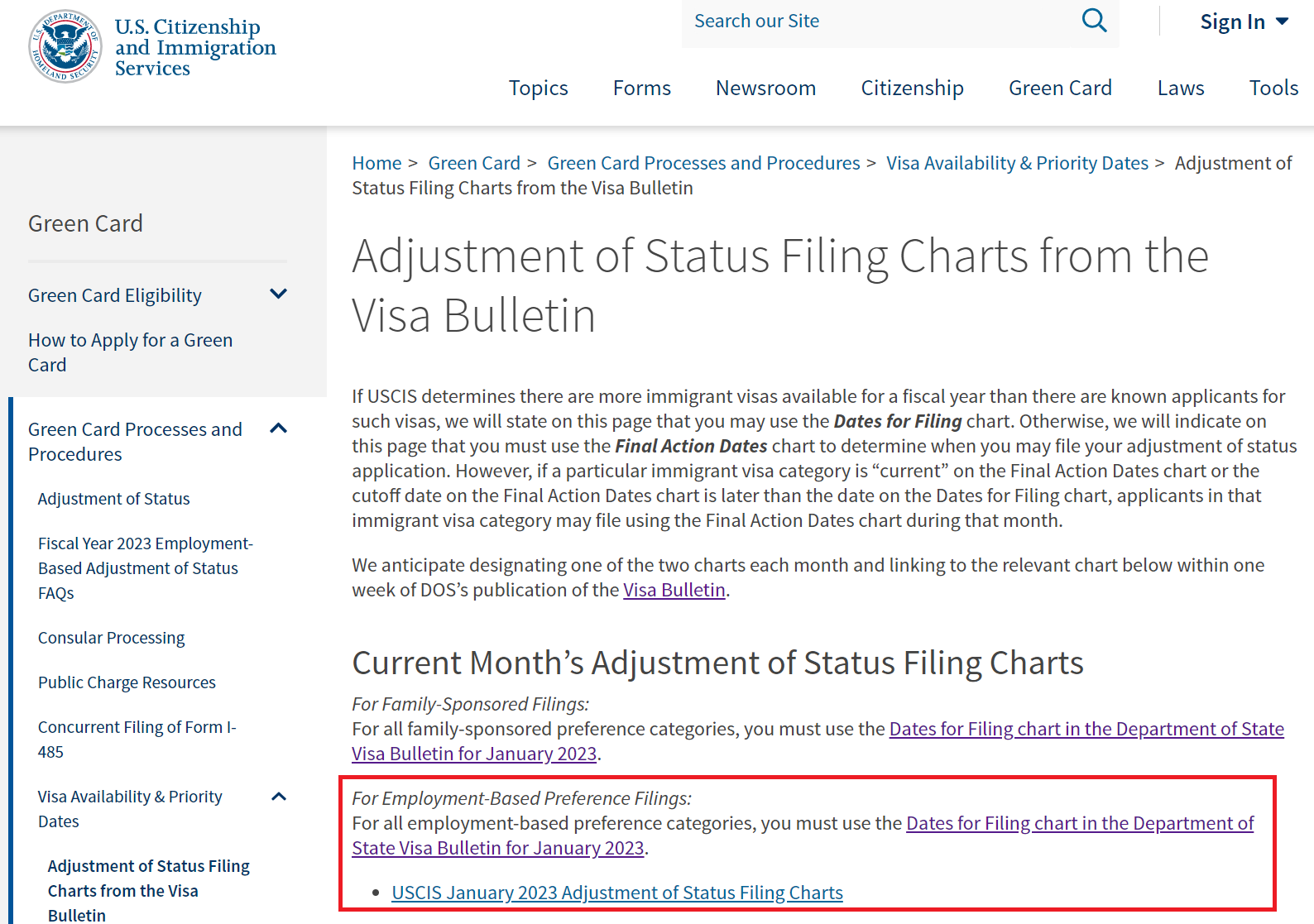 Adjustment of Status Filing Charts from the Visa Bulletin | USCIS