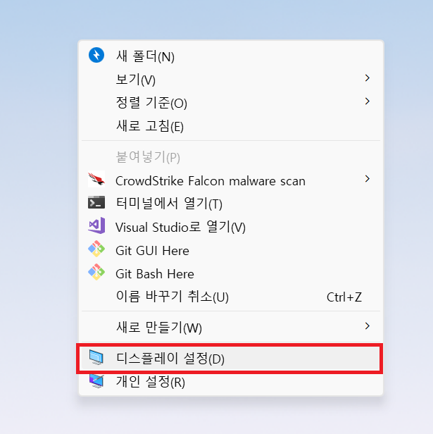 1. 바탕화면 우클릭 -> 디스플레이 설정