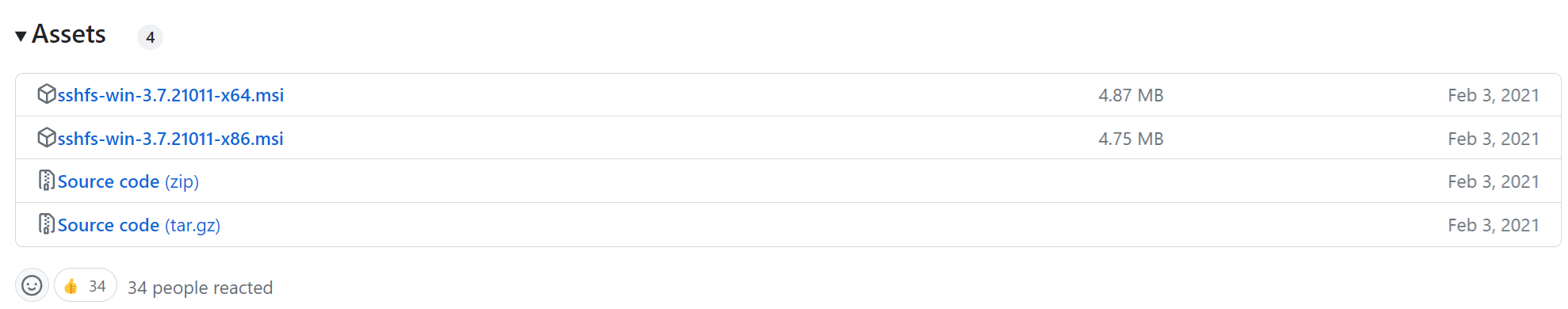 위 사이트 접속 후, 아래의 SSHFS-Win 최신버전 클릭