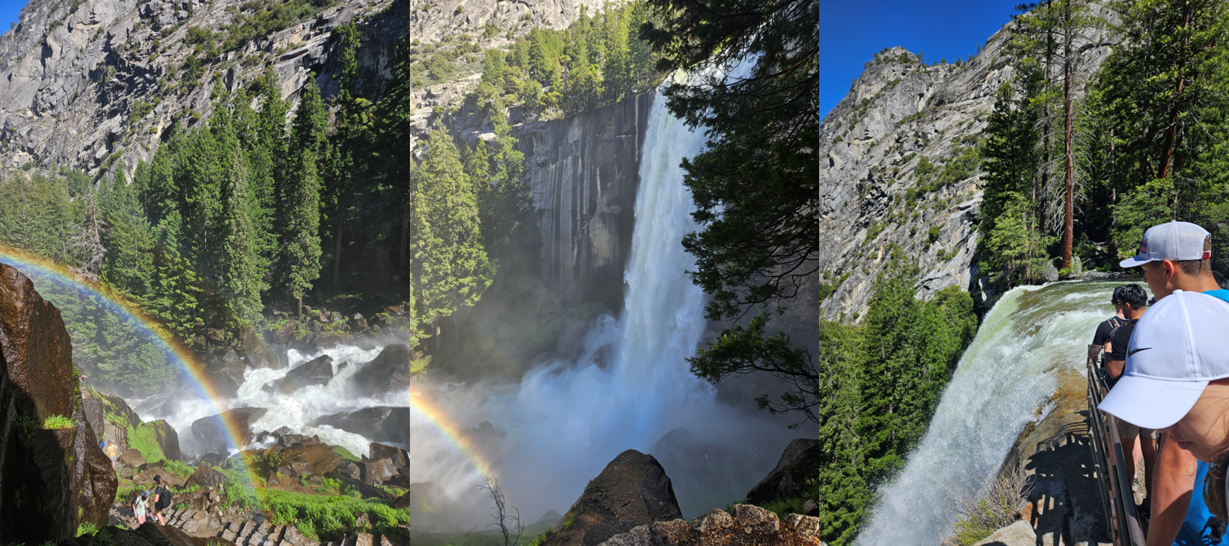 옵션 1은 거리가 짧은 대신, Clarke point 가는 길에 볼 수 있는 정말 멋진 Nevada fall 뷰를 못 봅니다. 또한, vernal fall을 올라가는데 물을 많이 맞으면서 급 지쳐버릴 수 있어요. 저희는 물을 더 맞고 싶지 않더라구요 ㅎㅎ